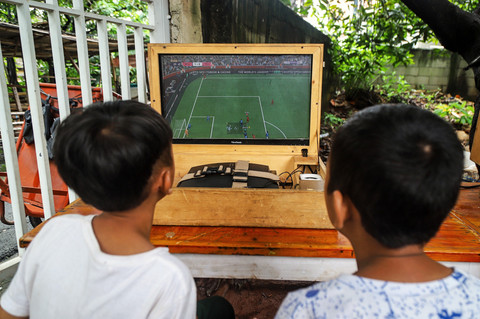 Foto: Anak-anak Cipinang isi waktu ngabuburit dengan main PS di rental