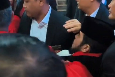Mantan Hakim Konstitusi Anwar Usman pingsan. Momen tersebut terjadi pada saat kirab wisuda purnabakti yang digelar di Gedung MK, Jakarta, Senin (13/4).