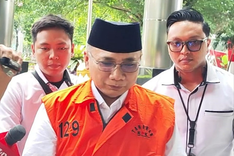 Yaqut arrived at the KPK’s prominent Red and White Building around 1:16 PM WIB, transported in a detention vehicle. He was seen wearing a white shirt, covered by the distinctive orange vest of a KPK detainee, with his hands cuffed.