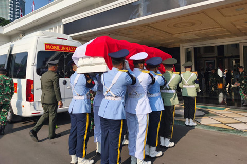 The remains of former Defense Minister Juwono Sudarsono arrived at the Ministry of Defense (Kemhan RI) on Sunday, March 29th, at 08:01 AM WIB, for a solemn lying in state. A formal release ceremony was scheduled for 11:00 AM WIB, led by Deputy Minister of Defense Donny Ermawan Taufanto. Following this, his body will be escorted to Kalibata Heroes’ Cemetery for burial, with Minister of Defense Sjafrie Sjamsoeddin serving as the inspector.
